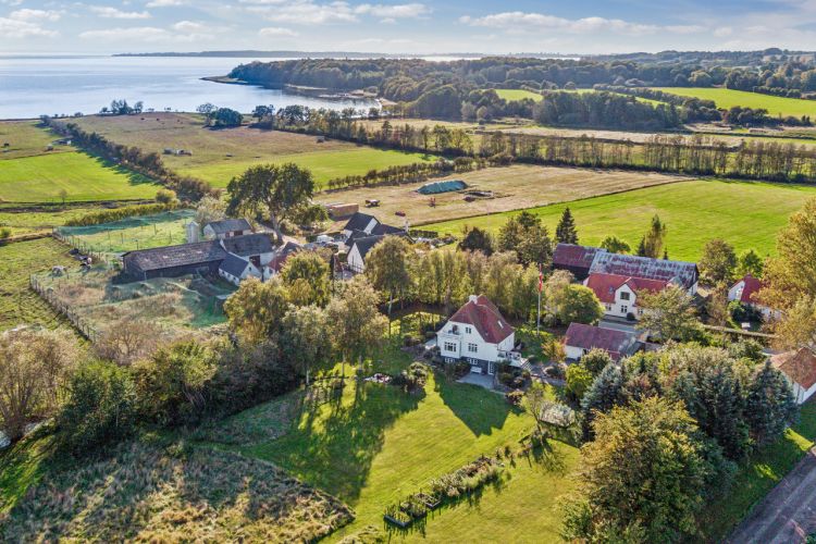 Hertil kommer en enestående udsigt over havet i flere retninger og egen strand med godkendt bade- og bådebro (for tiden nedtaget), samt absolut stilhed og alligevel tæt på alt.