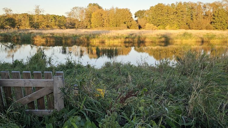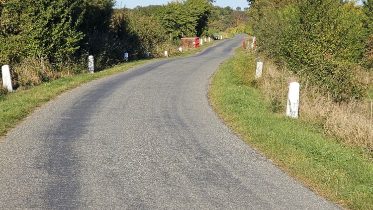 Umiddelbart efter du passerer den sidste lille sø – hvor sølvhejren har valgt at bo – kommer du til den nyrenoverede sluseport i Hårby å, der regulerer vandstanden i de bagved liggende enge. En bro med et flot rødmalet gelænder og en lang række kridhvide vejsten på hver side af vejen sørger for, at du holder ret kurs det sidste lille stykke gennem rønnebæralléen, frem til du møder den storslåede udsigt over Helnæsbugten.