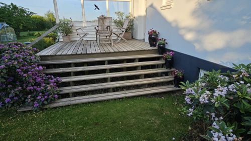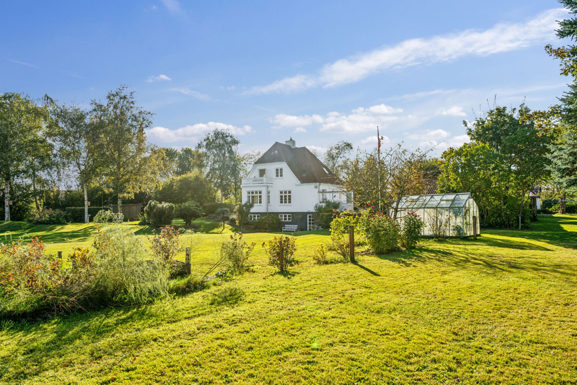 Billederne herunder svarer til den rundtur om boligen, de øvrige bygninger og grunden der er beskrevet i underfanen "Omgivelser" under fanen "Ejendommen" . Den bedste oplevelse får du, hvis du har adgang til 2 skærme, så beskrivelsen kan læses samtidig med at billederne vises